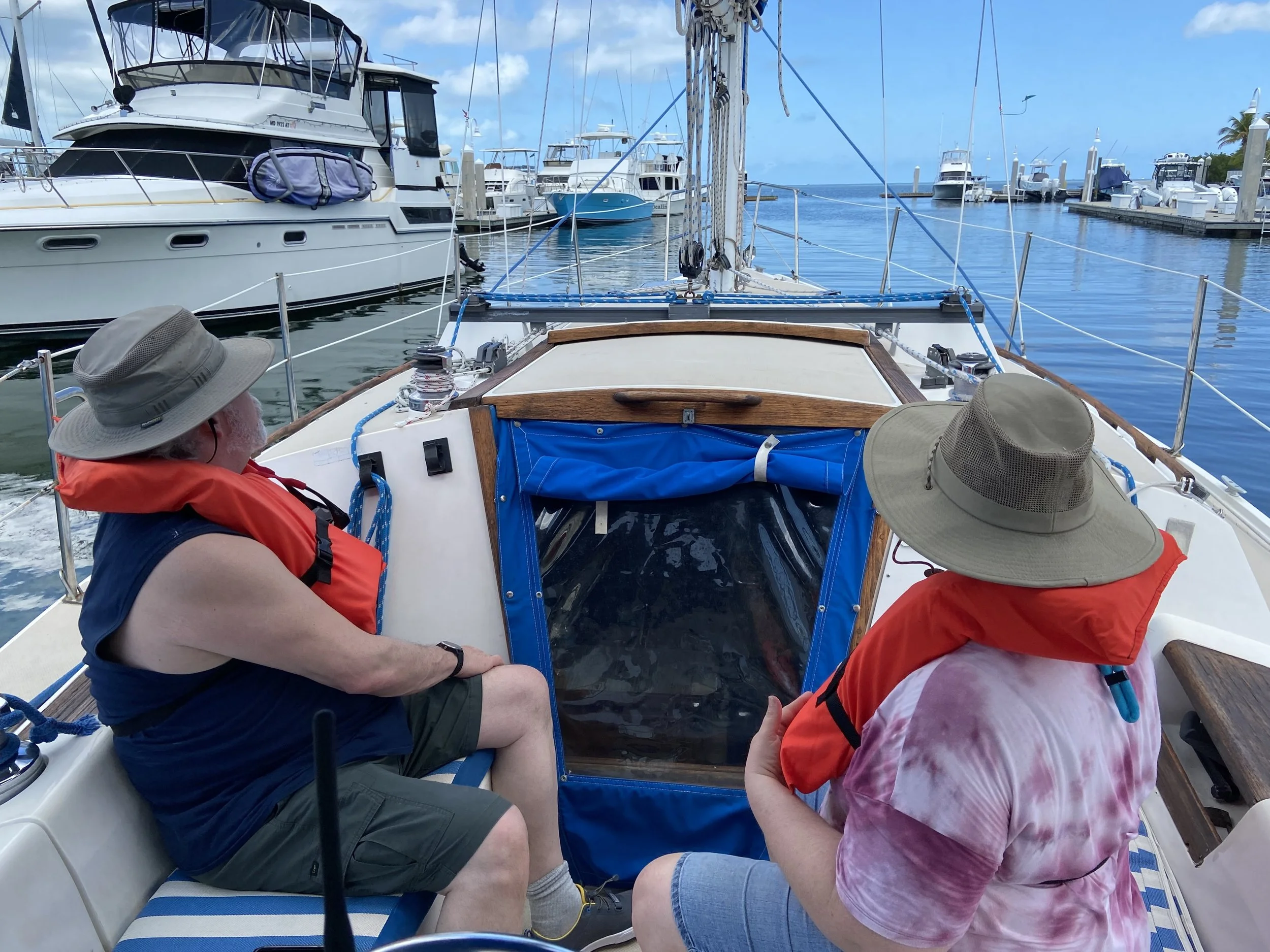 “We had no sailing experience prior to taking the ASA 101, 103 & 104 courses at Southernmost Sailing School. Captain Brad's immersive teaching style on the water and thorough instruction of the book lessons made for quick uptake of a lot of information in a relatively short period of time. Also, while on the water, his concise instructions yet patient and calm approach in steering us through challenging maneuvers in tricky weather was invaluable in preparing us for future sailing adventures on our own.
